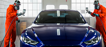 Repintura automotiva com cor ajustada em laboratório e aplicação guiada.