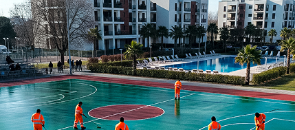 Soluções para piso, quadra, garagem e alto tráfego com sistema orientado.